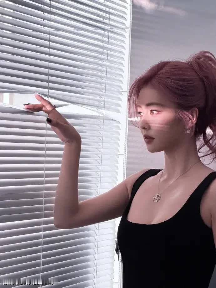 百叶窗光影游戏,指尖触碰高级氛围感